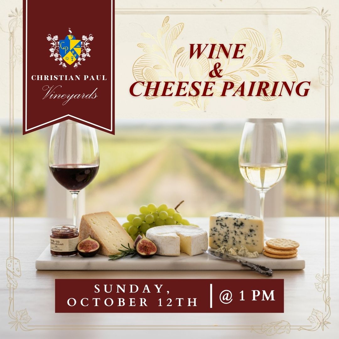Join us for a delightful afternoon dedicated to the art of pairing wine and cheese. During this guided tasting, you will explore how flavor, textures and aromas come together in perfect harmony. Guest will enjoy six thoughtfully selected wines from Christian Paul Vineyards, each paired with a curated course of hard, semi-hard and soft cheeses from around the world served with flavorful accompaniments that enhance every bite and sip.